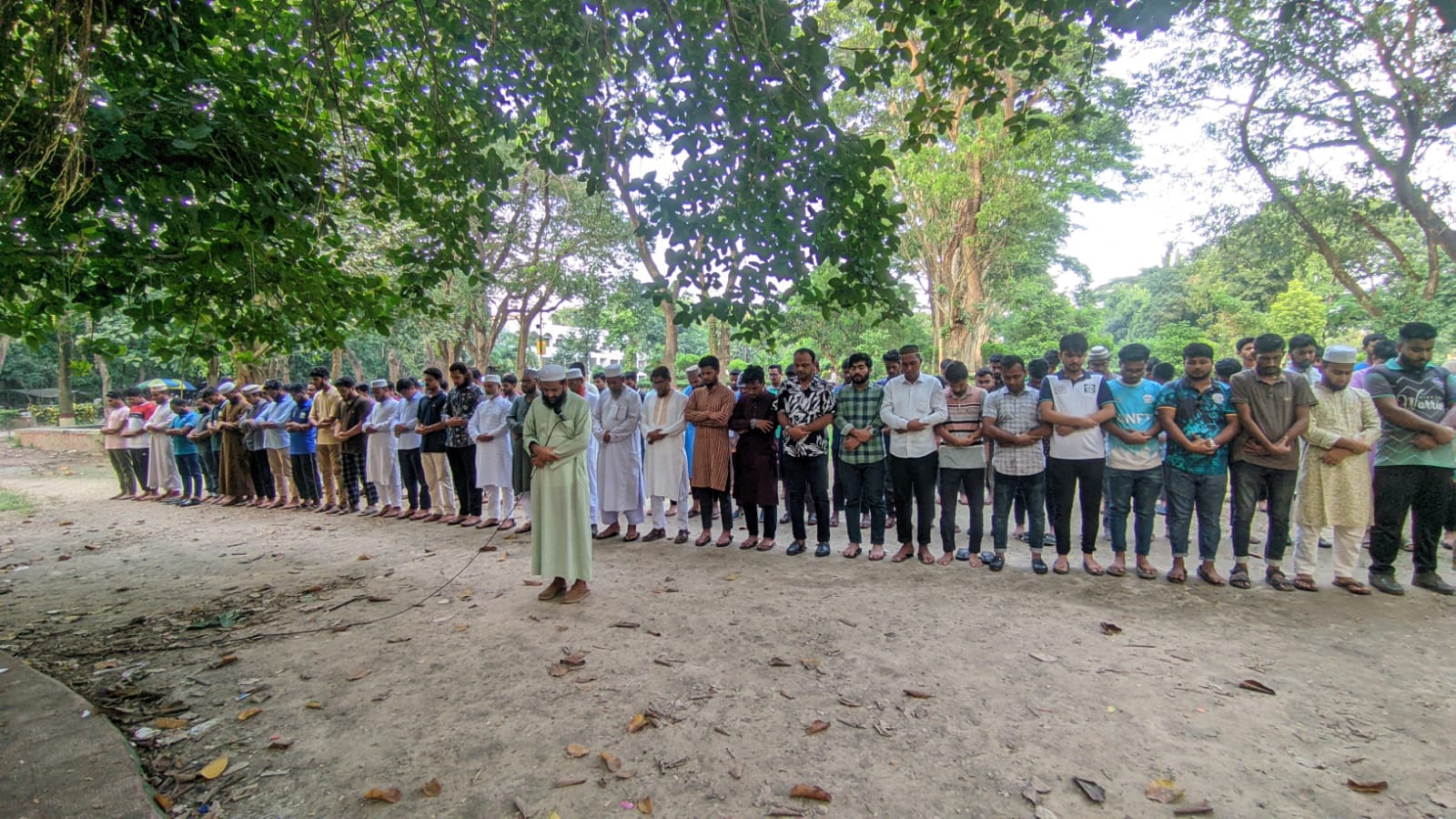 মঙ্গলবার (২২জুলাই) বিকাল সাড়ে পাঁচটার দিকে বিশ্ববিদ্যালয়ের বটতলা প্রাঙ্গণে এ গায়েবানা জানাজা অনুষ্ঠিত হয়। গায়েবানা জানাজা পড়ান বিশ্ববিদ্যালয়ের কেন্দ্রীয় মসজিদের খতিব জনাব আশরাফ উদ্দিন খান।