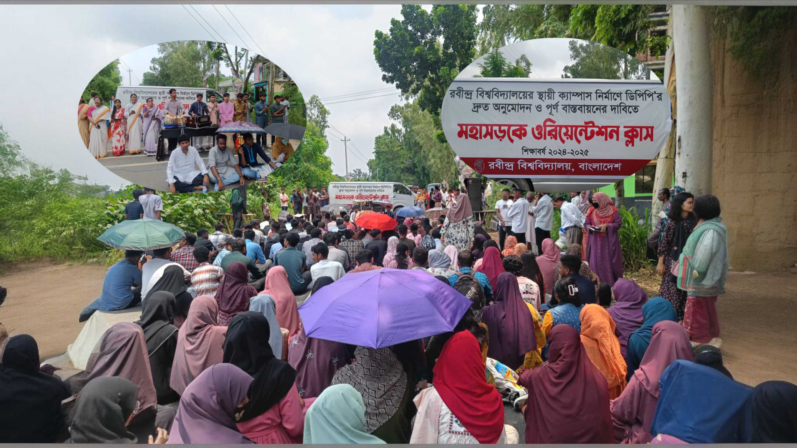 সিরাজগঞ্জের শাহজাদপুরে রবীন্দ্র বিশ্ববিদ্যালয়ে ২০২৪-২৫ শিক্ষাবর্ষের নবীনবরণ ব্যতিক্রমী আয়োজনে ঢাকা–পাবনা মহাসড়কে অনুষ্ঠিত হয়েছে।