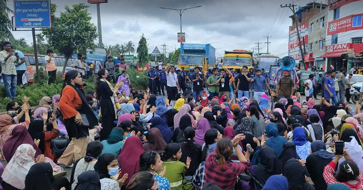 বৃহস্পতিবার দুপুর সাড়ে ১২টা থেকে মহাসড়কের ফেনীর মহিপাল ফ্লাইওভারের উত্তর দিকের অংশে অবস্থান নেন তারা।