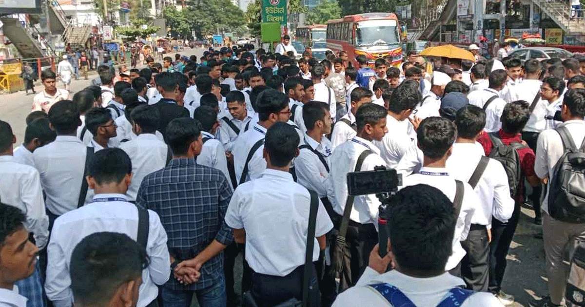 মঙ্গলবার বেলা সাড়ে ১১টার দিকে কলেজ প্রাঙ্গণ থেকে মিছিল নিয়ে শিক্ষার্থীরা সায়েন্সল্যাব মোড়ে এসে অবস্থান নেন। তারা সেখানে ব্যানার-প্ল্যাকার্ড হাতে অধ্যাদেশ সংশোধনের দাবিতে স্লোগান দিতে থাকেন।