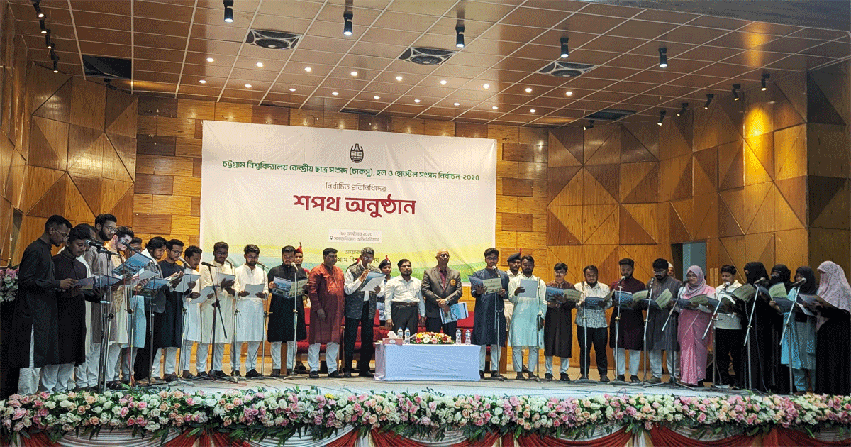আনুষ্ঠানিকভাবে শপথ গ্রহণ করেছেন চট্টগ্রাম বিশ্ববিদ্যালয় কেন্দ্রীয় ছাত্রসংসদ (চাকসু) এর নবনির্বাচিত নেতৃবৃন্দ। এছাড়া একইসাথে শপথ নিয়েছেন হল সংসদে নির্বাচিত প্রতিনিধিরাও