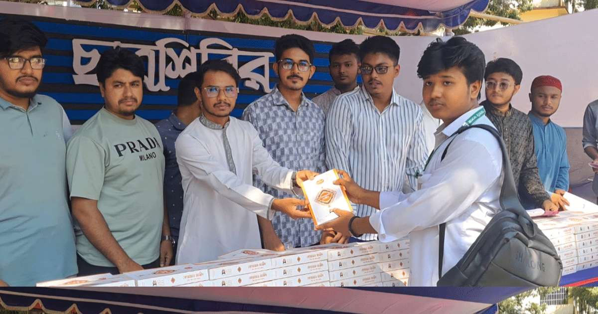 বাংলাদেশ ইসলামী ছাত্রশিবির ব্রাহ্মণবাড়িয়া সরকারি কলেজ শাখার উদ্যোগে ছয়শত শিক্ষার্থীর মাঝে বাংলা অনুবাদসহ পবিত্র কোরআন শরীফ বিতরণ করা হয়েছে।