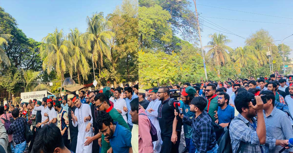 এ সময় মিছিলে অংশগ্রহণকারীরা ‘এই মুহূর্তে খবর এলো, খুনি হাসিনার ফাঁসির রায় হলো’, ‘খুনি হাসিনার বিরুদ্ধে ডাইরেক্ট অ্যাকশন’, ‘আওয়ামী লীগের বিরুদ্ধে ডাইরেক্ট অ্যাকশন, ভোটচোরের বিরুদ্ধে ডাইরেক্ট অ্যাকশন’, ‘দিল্লি না ঢাকা—ঢাকা ঢাকা’, ‘লড়াই লড়াই লড়াই চাই, লড়াই করে বাঁচতে চাই’, ‘গোলামী না আজাদি—আজাদি আজাদি’—ইত্যাদি স্লোগান দিতে দেখা যায়।