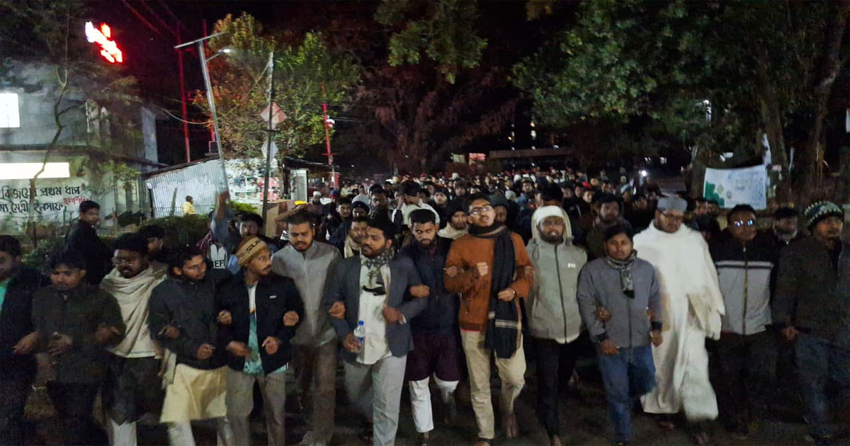 বৃহস্পতিবার (১৮ ডিসেম্বর) রাত পৌনে ১১ টায় বিশ্ববিদ্যালয়ের জিরো পয়েন্টে বিক্ষোভ শুরু করেন তারা। এরপর সোহরাওয়ার্দী হল, আলাওল হল হয়ে দুুই নং গেইটে বক্তব্যের মাধ্যমে বিক্ষোভ মিছিল শেষ করেন নেতাকর্মীরা।