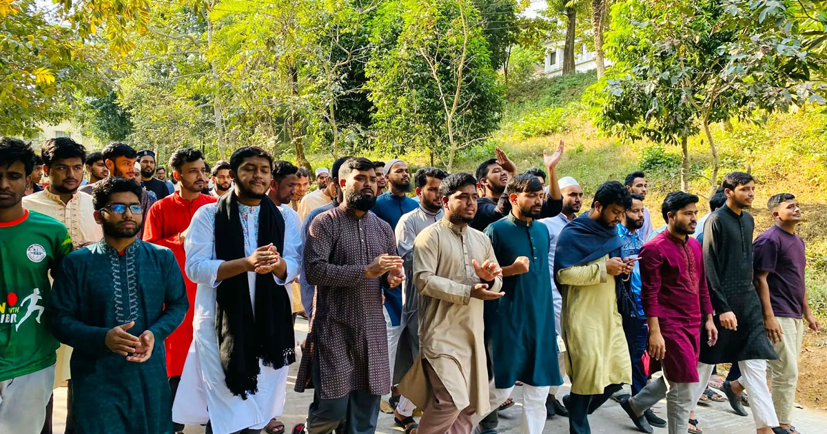 শুক্রবার (১৯ ডিসেম্বর) জুমার নামাজের পর সেন্ট্রাল মসজিদ থেকে বিক্ষোভ মিছিল নিয়ে বিশ্ববিদ্যালয়ের মূল ফটকে গিয়ে শেষ হয়।