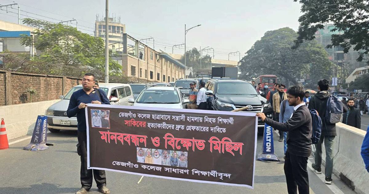 সহপাঠী সাকিবুল হাসান রানার হত্যার বিচার ও হত্যাকারীদের দ্রুত গ্রেপ্তারের দাবিতে আবারও রাজধানীর ফার্মগেট এলাকায় সড়ক অবরোধ করেছেন তেজগাঁও কলেজের উচ্চমাধ্যমিক শিক্ষার্থীরা।