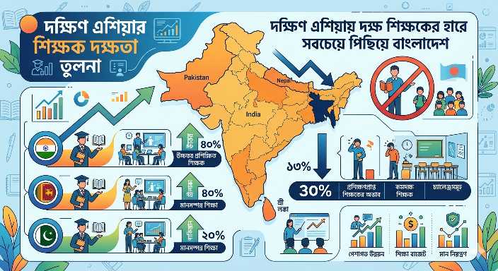 দক্ষিণ এশিয়ার দেশগুলোর মধ্যে ন্যূনতম দক্ষতাসম্পন্ন শিক্ষকের হারে বাংলাদেশ সর্বনিম্ন অবস্থানে রয়েছে। আন্তর্জাতিক সংস্থা ইউনেস্কো প্রকাশিত সর্বশেষ বিশ্ব শিক্ষা পরিসংখ্যান অনুযায়ী, দেশের মাধ্যমিক স্তরে গড়ে মাত্র ৫৫ শতাংশ শিক্ষক নির্ধারিত ন্যূনতম দক্ষতার মান পূরণ করেছেন, যা আঞ্চলিক অন্যান্য দেশের তুলনায় উল্লেখযোগ্যভাবে কম।