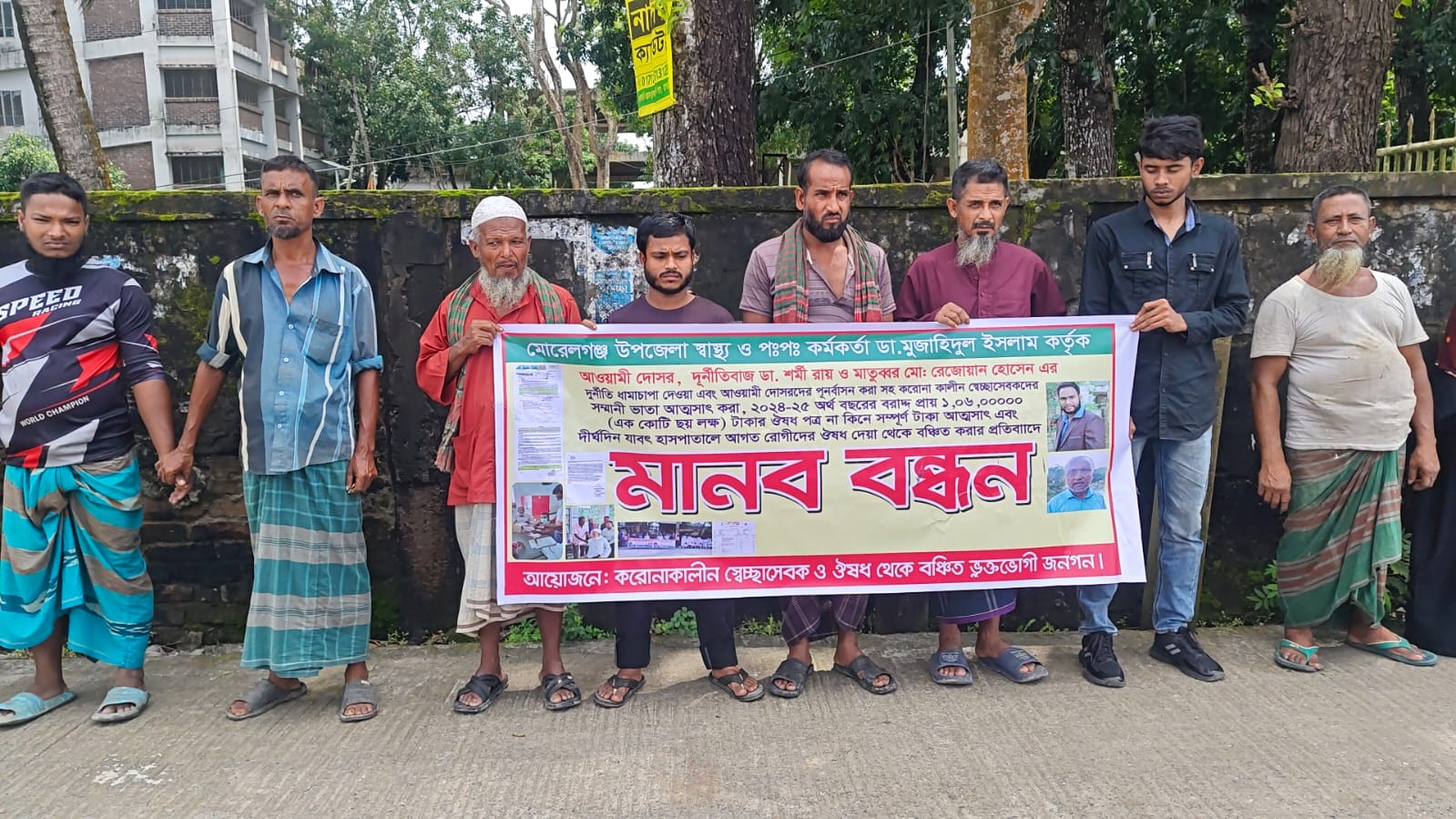 বাগেরহাটের মোরেলগঞ্জ উপজেলা হাসপাতালে বরাদ্দের ভুয়া বিল-ভাউচার তৈরি করে টাকা আত্মসাৎ, কর্মচারীদের কাছ থেকে জোরপূর্বক ঘুষ আদায় এবং অনিয়মের প্রতিবাদ করায় চাকরিচ্যুত করার অভিযোগে মানববন্ধন অনুষ্ঠিত হয়েছে।