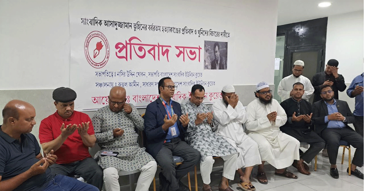 সভা শেষে সাংবাদিক তুহিনের আত্মার মাগফিরাত কামনা করে বিশেষ দোয়া অনুষ্ঠিত হয়।
