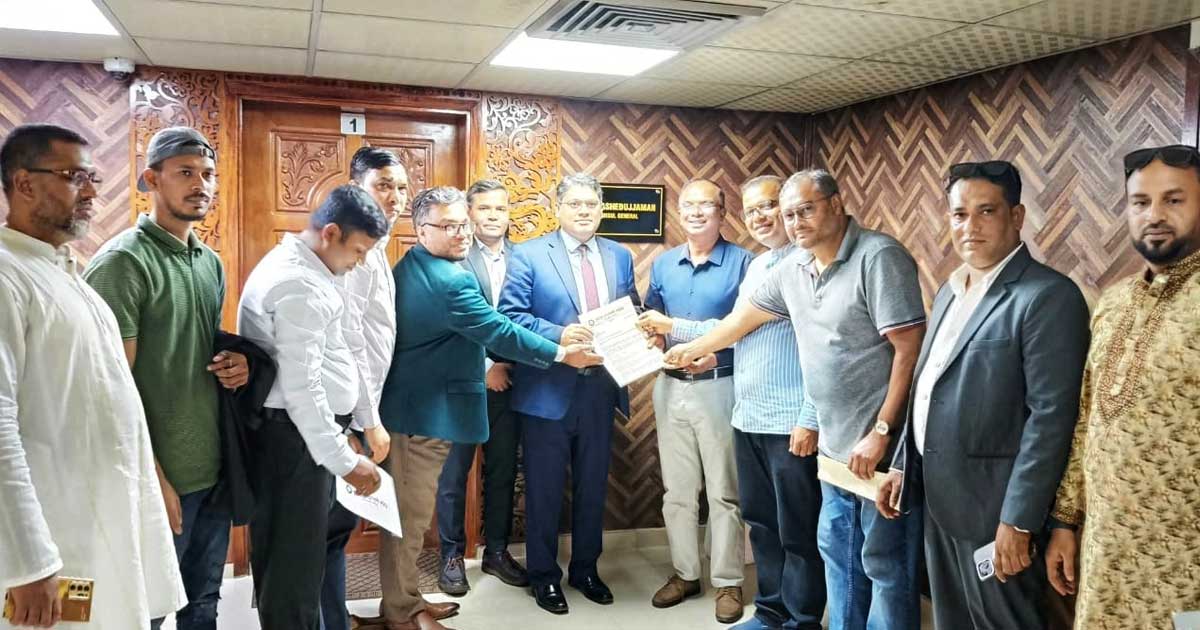 নোয়াখালীকে বিভাগ করার দাবিতে দুবাইয়ে কনসাল জেনারেল এর কাছে স্মারকলিপি প্রদানকালে ধারনকৃত ছবি।