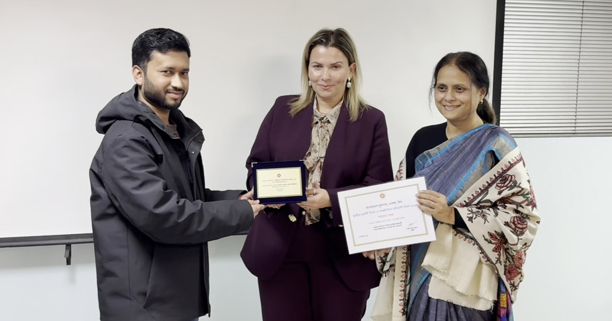 অনুষ্ঠানে পুরস্কারপ্রাপ্তদের হাতে সম্মাননা স্মারক ও সনদ তুলে দেন গ্রিসে নিযুক্ত বাংলাদেশের রাষ্ট্রদূত নাহিদা রহমান সুমনা এবং অতিথি জাতিসংঘের একটি ট্রাইব্যুনালের বিচারক ক্যাথরিন কুটসোপুলু।