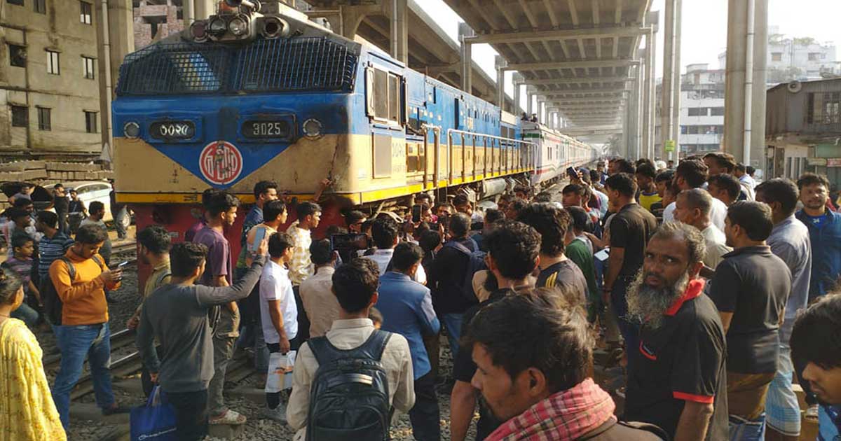কলেজের সামনে থেকে বিক্ষোভ মিছিল নিয়ে সোমবার বিকাল সাড়ে ৩টার দিকে রেলপথ অবরোধ করেন তারা। এ সময় ঢাকা রেলওয়ে স্টেশন থেকে ছেড়ে আসা একটি ট্রেন লাল পতাকা দেখিয়ে থামানো হয়।