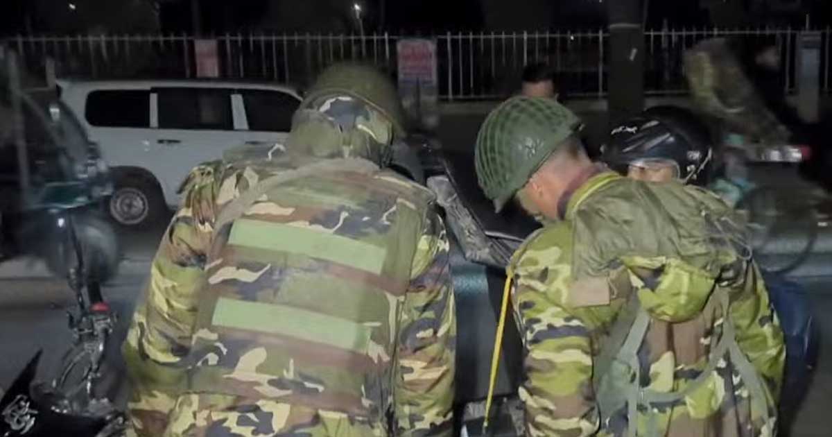 গাজীপুর জেলা প্রশাসকের অফিসের সামনে চেকপোস্ট বসিয়ে মোটরসাইকেলসহ সড়কে বিভিন্ন গাড়ি থামিয়ে তল্লাশি চালান সেনা সদস্যরা।