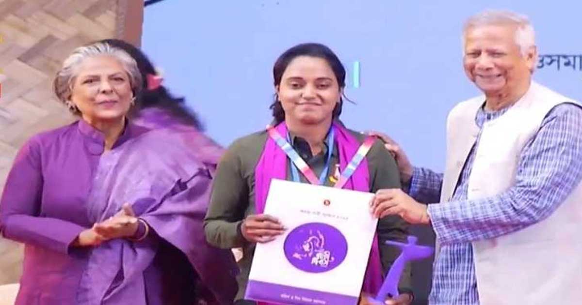 আন্তর্জাতিক নারী দিবস উপলক্ষ্যে শ্রেষ্ঠ ৬ অদম্য নারীর হাতে সম্মাননা পুরস্কার তুলে দিলেন প্রধান উপদেষ্টা প্রফেসর ড. মুহাম্মদ ইউনূস।
