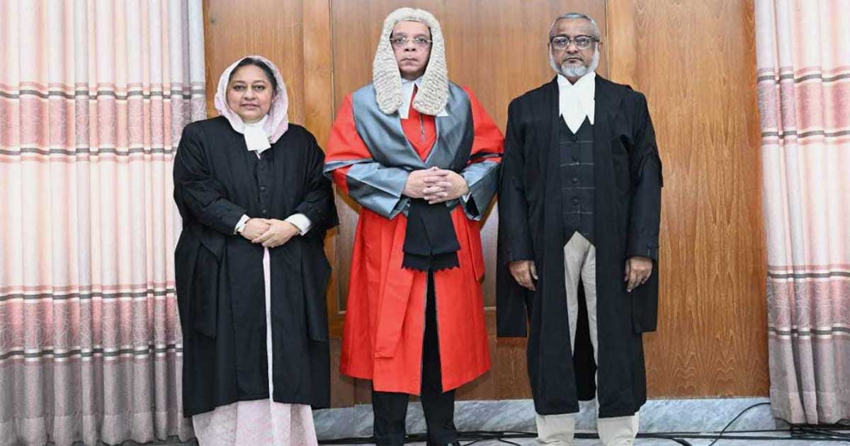মঙ্গলবার সকাল ১০টা ৪০ মিনিটে সুপ্রিম কোর্টের জাজেস লাউঞ্জে প্রধান বিচারপতি ড. সৈয়দ রেফাত আহমেদ তাদের শপথবাক্য পাঠ করান।
