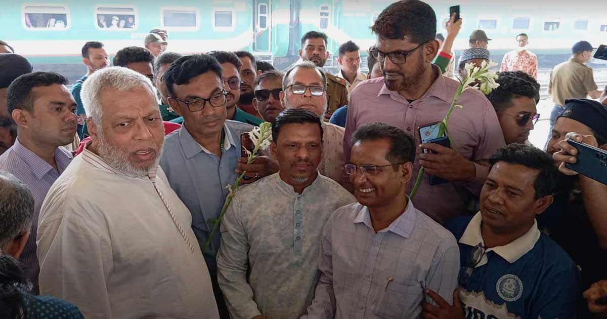 এ সময় ট্রেনের যাত্রীদের ফুল দিয়ে শুভেচ্ছা জানান রেলপথ উপদেষ্টা। এবং যাত্রীদের সঙ্গে তিনি কুশল বিনিময় করেন।