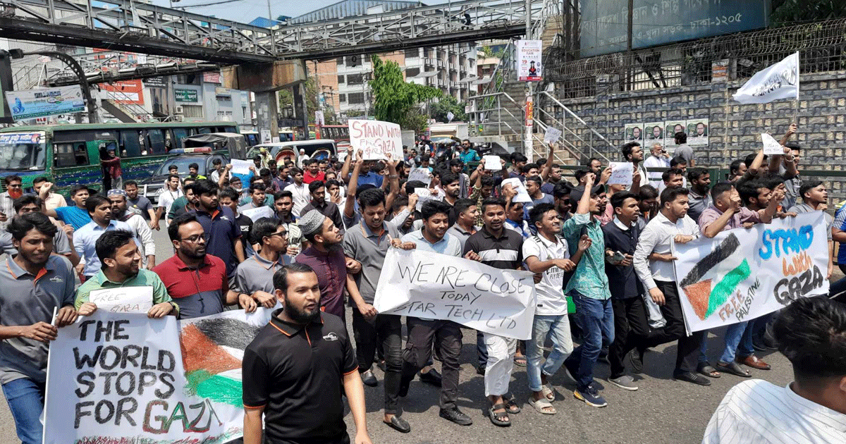 বেসরকারি প্রতিষ্ঠান স্টার টেকের কর্মীরা এ বিক্ষোভে অংশ নেন। প্রতিষ্ঠানটির একজন কর্মী বলেন, ‘দ্যা ওয়ার্ল্ড স্টপস ফর গাজা কর্মসূচির অংশ হিসেবে আমরা আজ রাস্তায় নেমেছি। গাজায় ইসরায়েলি দখলদার বাহিনী যেভাবে সাধারণ মানুষের ওপর নৃশংস হামলা চালাচ্ছে, আমরা তার তীব্র নিন্দা জানাই।’