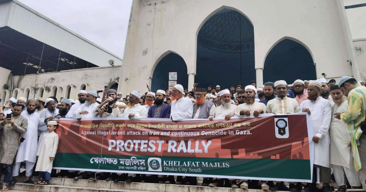 দখলদার রাষ্ট্র ইসরায়েল মধ্যপ্রাচ্যের রাষ্ট্র ইরানে হামলার ঘটনার প্রতিবাদে বিক্ষোভ সমাবেশ ও মিছিল করেছে ইসলামি চারটি সংগঠন।