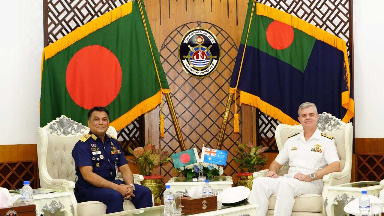 বাংলাদেশ কোস্টগার্ড মহাপরিচালক রিয়ার অ্যাডমিরাল মো. জিয়াউল হকের সঙ্গে সৌজন্য সাক্ষাৎ করেছেন অস্ট্রেলিয়ান মেরিটাইম বর্ডার কমান্ডের কমান্ডার এবং জয়েন্ট এজেন্সি টাস্ক ফোর্স, অপারেশন সোভেরিন বর্ডার্সের কমান্ডার রিয়ার অ্যাডমিরাল ব্রেট সন্টার এবং অস্ট্রেলিয়ান দূতাবাসের প্রতিনিধিদল।