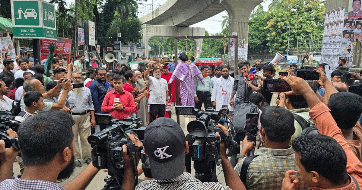 বিডিআর, শাপলা ও ২৪শে জুলাইয়ের গণহত্যার মূল পরিকল্পনাকারী হিসেবে অভিযুক্ত শেখ হাসিনার বিরুদ্ধে প্রতীকী ফাঁসি কার্যকর করেছে ছাত্র-জনতা। মঙ্গলবার (৫ আগস্ট) সকাল ১০টা ৩৬ মিনিটে জাতীয় প্রেস ক্লাবের সামনে এ কর্মসূচি অনুষ্ঠিত হয়। এ অনুষ্ঠানের আয়োজন করে ‘জাগ্রত জুলাই’ ও ‘জুলাই ঐক্য’। এতে উপস্থিত ছিলেন- সাবেক সেনা কর্মকর্তা লেফটেন্যান্ট কর্নেল হাসিনুর রহমান, ইনকিলাব মঞ্চের মুখপাত্র শরীফ ওসমান বিন হাদি, বৈষম্যবিরোধী ছাত্র আন্দোলনের সাবেক কেন্দ্রীয় সমন্বয়ক ও ‘জুলাই ঐক্য’র সংগঠক এবি জুবায়ের, জুলাই ঐক্যের সংগঠক ও সাংবাদিক ইসরাফিল ফরাজী, জাগ্রত জুলাইয়ের সিনিয়র সহ-সভাপতি শামীম হামিদিসহ বিভিন্ন শ্রেণি-পেশার মানুষ।