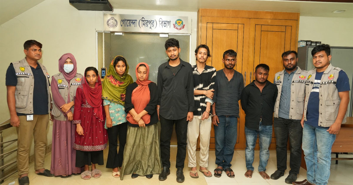 গ্রেপ্তারকৃতরা হলো- মো. বিপ্লব খান, ফারিন তানহা তোফা, সম্পা আক্তার, শাহ মোহাম্মদ জোবায়ের অভিক, মো. আল-মাসুদ, মোছা. মনিকা আক্তার ও মো. আবু সুফিয়ান।