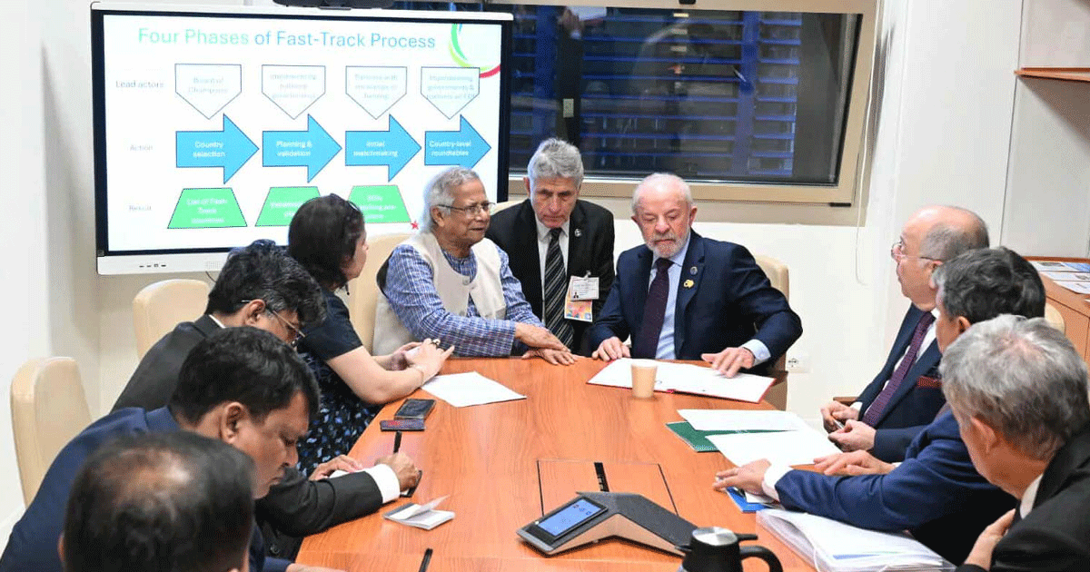 সোমবার রোমে জাতিসংঘের খাদ্য ও কৃষি সংস্থা (এফএও) আয়োজিত বিশ্ব খাদ্য ফোরামের (ডব্লিউএফএফ) প্রধান অনুষ্ঠানের ফাঁকে ব্রাজিলের প্রেসিডেন্ট লুইজ ইনাসিও লুলা দা সিলভার সাথে বৈঠককালে তিনি এসব কথা বলেন।