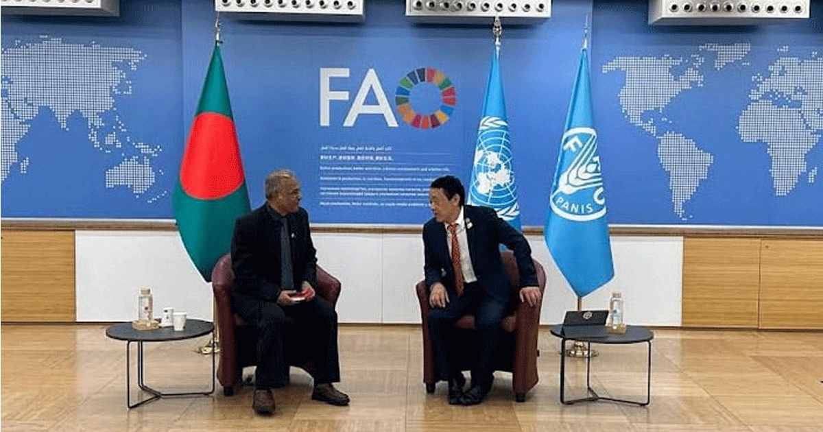 কৃষি উপদেষ্টা লেফটেন্যান্ট জেনারেল (অব.) মো. জাহাঙ্গীর আলম চৌধুরী জাতিসংঘ খাদ্য ও কৃষির (এফএও) মহাপরিচালক কু ডংইউয়ের সাথে তার কার্যালয়ে দ্বিপক্ষীয় বৈঠকে অংশগ্রহণ করেছেন।