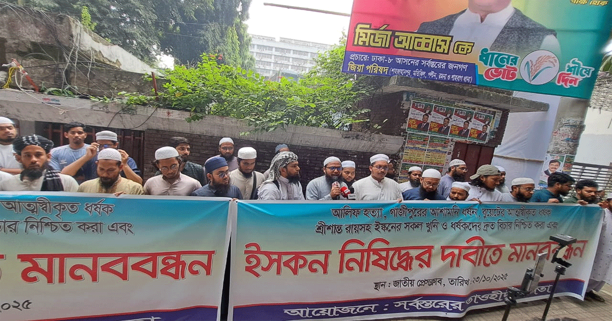 বক্তারা আরও বলেন, দেশে শান্তি ও সাম্প্রদায়িক সম্প্রীতি রক্ষার স্বার্থে ইস্কন নিষিদ্ধ ঘোষণা করা ছাড়া আর কোনো বিকল্প নেই।