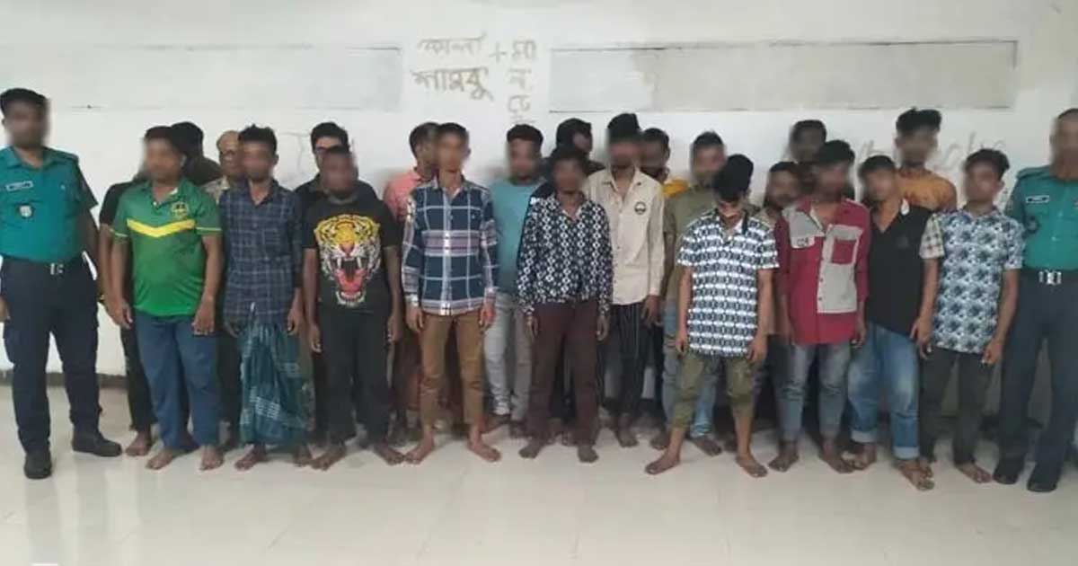 গ্রেপ্তাররা হলেন- আরমান (৩৮), সাজু (৩২), রুস্তম (৩৫), সাঞ্জু ওরফে সাজু ওরফে রাব্বি (২৪), জুয়েল বেপারী (৩০), সুমন (৩২), সেলিম (৩৫), সোহান (২৪), মিরাজ (২০), নাদিম (১৯), রুবেল (২৬), রেজাউল করিম (৬৫), সুজিত রয় (৫৭), সোহাগ (৩০), জাহিদুল ইসলাম (২৩), আরমান (৩২), নাঈম (২০), খাইরুল (২২), সাইদুল (২২), মমতাজ (২০), ইশতেহার (৩৫), ওয়াসিম (৩৫), সুমন (৩০), আবল্লাহ সারমান (৩১), মো. ইমরান হোসেন আলম (২৮), আকাশ (২৫) ও সোহেল (২৮)।