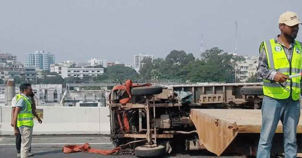 সোমবার দুপুর ১২টার দিকে এলিভেটেড এক্সপ্রেসওয়ের মহাখালী অংশে এ দুর্ঘটনা ঘটে।