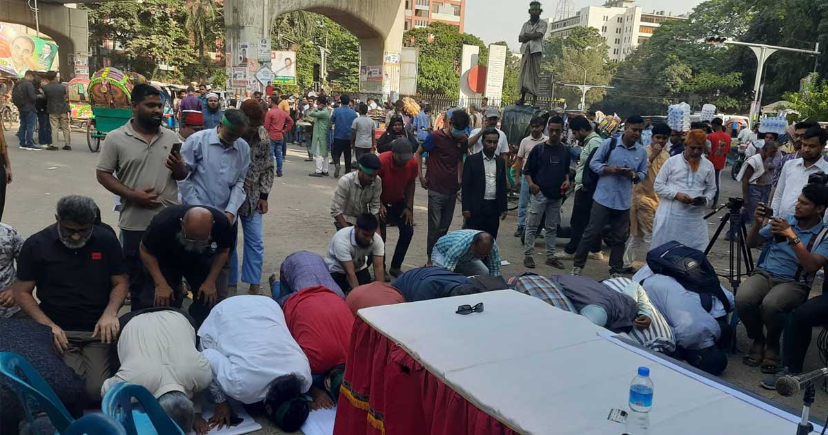 সোমবার বিকেল ৩টার দিকে রাজধানীর হাই কোর্টের মাজার গেটের পাশে এই গণ সিজদাহ দেয়া হয়।