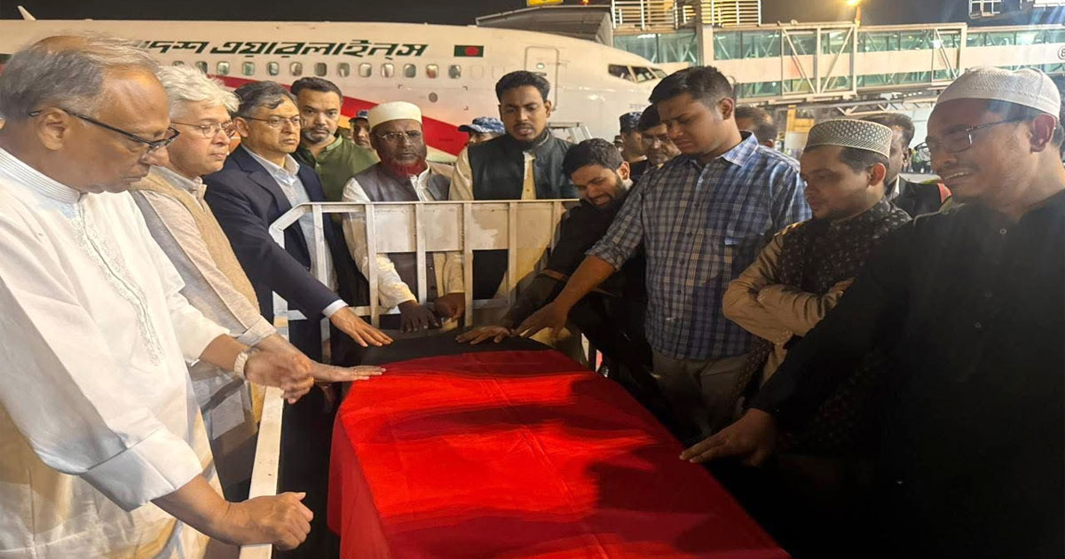 বিমান বাংলাদেশ এয়ারলাইন্সের দায়িত্বশীল সূত্র বিষয়টি নিশ্চিত করেছে। বিমানবন্দরের ৮ নম্বর হ্যাঙ্গার গেট দিয়ে তার মরদেহ বের করা হবে।