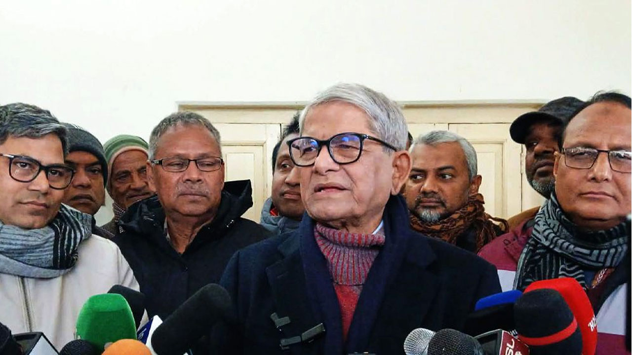 মির্জা ফখরুল বলেন, 'দেশের মানুষ নির্বাচনের জন্য অপেক্ষা করছে কিন্তু আইনশৃঙ্খলা পরিস্থিতি যা দাঁড়িয়েছে তাতে আমি সন্তুষ্ট হতে পারছি না। যে হারে রাজনৈতিক নেতৃবৃন্দকে খুন করা হচ্ছে, আমাদের দলেরও অনেক নেতাকে হত্যা করা হয়েছে। আমরা দলের পক্ষ থেকে তীব্র নিন্দা ও খুব জানিয়েছি। কিন্তু সরকারের পক্ষ থেকে তেমন কোন ব্যবস্থা গ্রহণ করা হয় নাই। আমরা আশা করব সরকার আরও দায়িত্বশীল ভূমিকা পালন করবেন এবং এ ঘটনাগুলো যেন পুনরাবৃত্তি না ঘটে সে বিষয়ে তারা কাজ করবেন।'