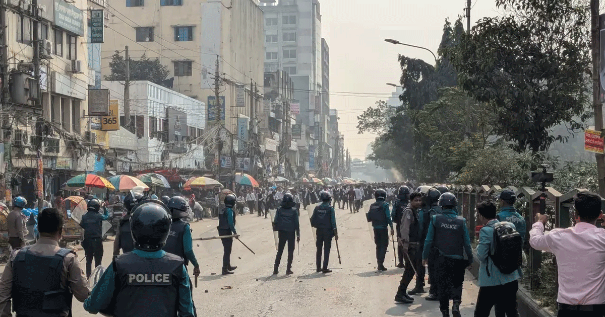 পুলিশের সঙ্গে সংঘর্ষে জড়িয়েছেন ঢাকা কলেজের শিক্ষার্থীরা। এ সময় শিক্ষার্থীরা পুলিশের উদ্দেশ্যে ইটপাটকেল ছোড়ে।