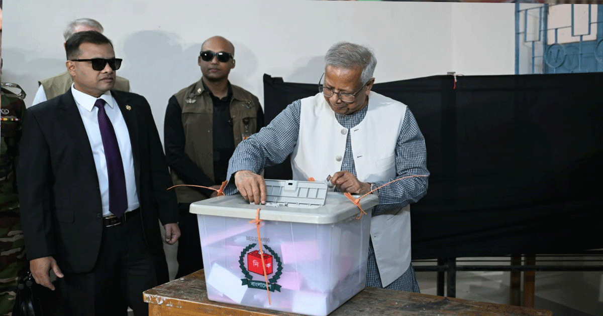 ত্রয়োদশ জাতীয় সংসদ নির্বাচনে ভোট দিয়েছেন প্রধান উপদেষ্টা ড. মুহাম্মদ ইউনূস।