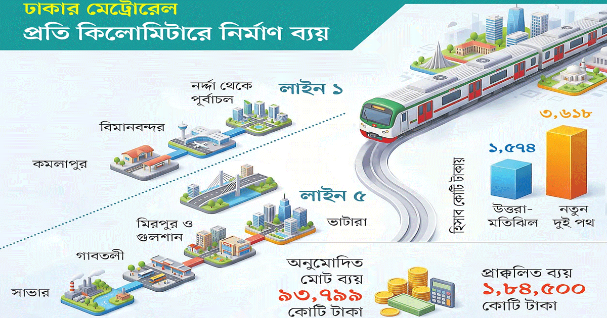 কমলাপুর–বিমানবন্দর ও সাভার–ভাটারা পথে মেট্রোর ব্যয় দাঁড়াবে ২ লাখ কোটি টাকা, কী ভাবছে সরকার