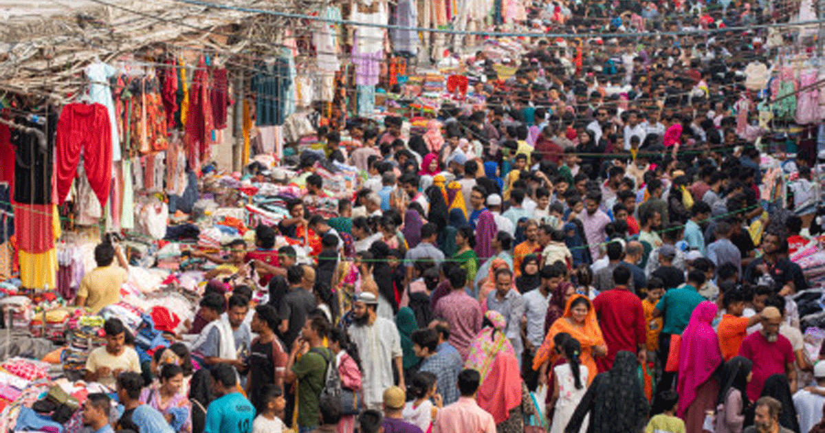 শুক্রবার ছুটির দিন হওয়ায় ঢাকার নিউ সুপার মার্কেট, গাউছিয়া, চাঁদনী চক, চন্দ্রিমা, নূরজাহান সুপার মার্কেট, প্রিয়াঙ্গন শপিং সেন্টারসহ নানা মার্কেটে উপচে পড়া ভিড় দেখা গেছে।