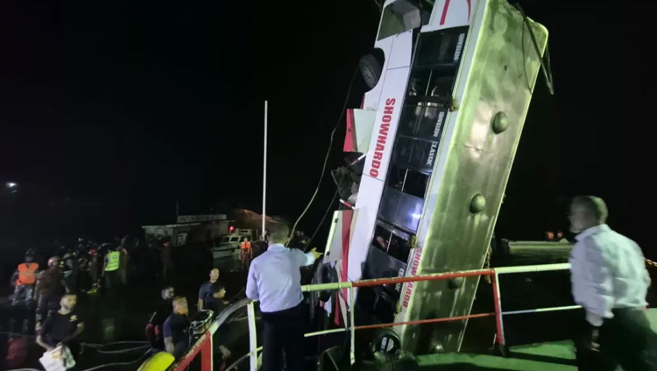 রাজবাড়ীর গোয়ালন্দ উপজেলার দৌলতদিয়া ফেরিঘাটে পন্টুনে ওঠার সময় যাত্রীবাহী একটি বাস পদ্মা নদীতে তলিয়ে যাওয়ার ঘটনায় এখন পর্যন্ত ১৯ জনের মরদেহ উদ্ধার করা হয়েছে। নিহতদের মধ্যে ১০ জনের পরিচয় শনাক্ত হয়েছে। বুধবার (২৫ মার্চ) দিবাগত রাত পৌনে ১টার দিকে পানির নিচে থাকা বাসটি উদ্ধার করার পর একে একে মরদেহগুলো বের করা হয়।