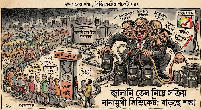 গোয়েন্দা সংস্থার তদন্ত প্রতিবেদন অনুযায়ী, বাংলাদেশের জ্বালানি খাতে কৃত্রিম সংকট তৈরি ও অবৈধ ব্যবসায় সক্রিয় একাধিক সিন্ডিকেট ও চক্রের অস্তিত্ব পাওয়া গেছে। সম্প্রতি মধ্যপ্রাচ্যের যুদ্ধ পরিস্থিতিকে পুঁজি করে এসব চক্র জ্বালানি তেলের বাজার অস্থিতিশীল করছে। গত ফেব্রুয়ারির শেষ দিকে ইরানে হামলার পর বৈশ্বিক জ্বালানি বাজারে অস্থিরতা সৃষ্টি হলে দেশের বাজারেও এর প্রভাব পড়ে। এই সুযোগে কিছু স্বার্থান্বেষী গোষ্ঠী কৃত্রিম সংকট তৈরি করে মুনাফা ও রাজনৈতিক অস্থিরতা সৃষ্টির চেষ্টা চালাচ্ছে বলে গোয়েন্দা তথ্যে উঠে এসেছে।