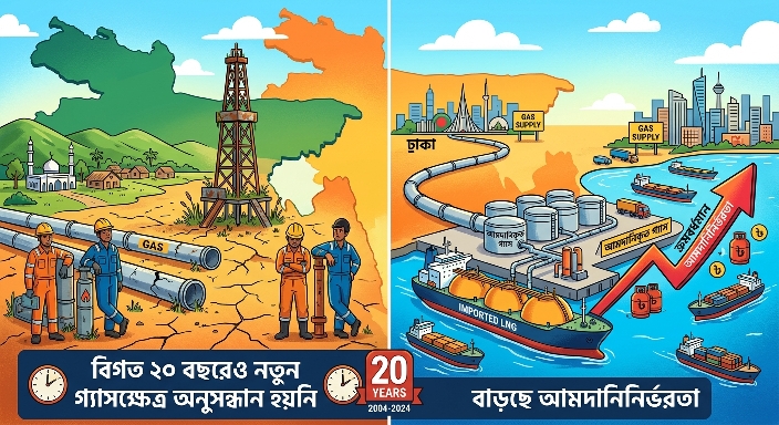 দেশে গত দুই দশকে নতুন কোনো গ্যাসক্ষেত্র নিয়ে কার্যকর সমীক্ষা বা অনুসন্ধান হয়নি বলে জানিয়েছেন সংশ্লিষ্ট কর্মকর্তারা। দীর্ঘ সময় পরিকল্পনা ও নথি প্রণয়নে সীমাবদ্ধ থাকায় জ্বালানি খাত ধীরে ধীরে আমদানিনির্ভর হয়ে পড়েছে। এতে গ্যাসের ঘাটতি বাড়ার পাশাপাশি শিল্প ও বিনিয়োগ খাতেও নেতিবাচক প্রভাব পড়ছে।