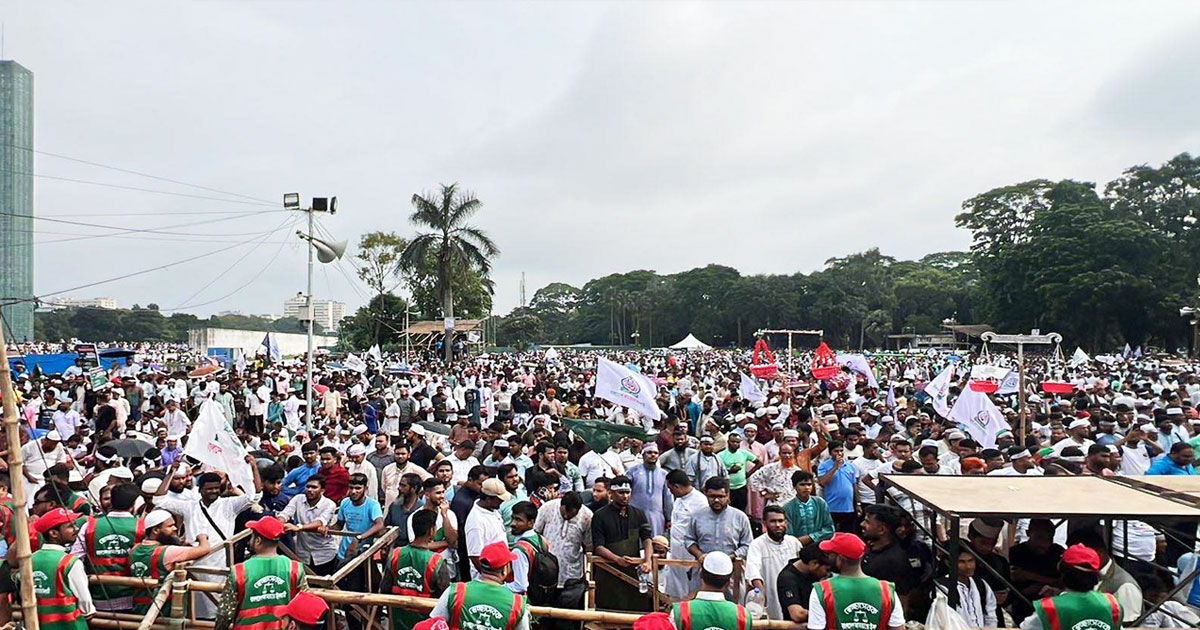 সাত দফা দাবিতে রাজধানীর ঐতিহাসিক সোহরাওয়ার্দী উদ্যানে প্রথমবারের মতো একক সমাবেশ ডেকেছে বাংলাদেশ জামায়াতে ইসলামী। আজ শনিবার দুপুর ২টায় আনুষ্ঠানিকভাবে সমাবেশ শুরু হচ্ছে। ইতিমধ্যেই সমাবেশস্থলে নেতাকর্মীদের সরব উপস্থিতি দেখা গেছে।