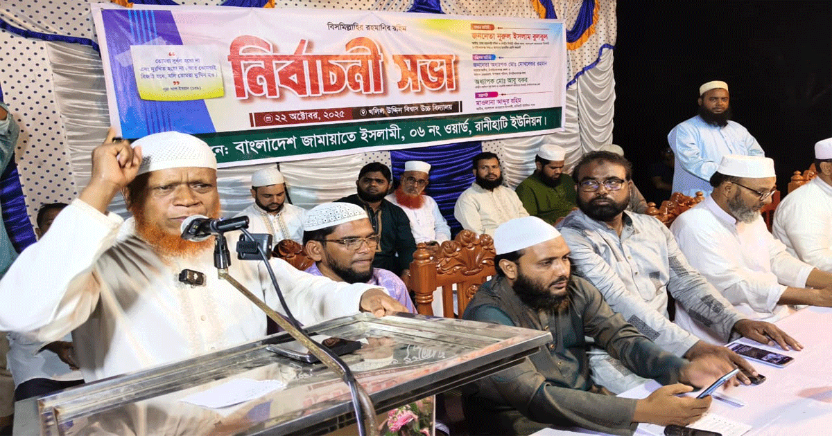 বুধবার (২২ অক্টোবর) সন্ধ্যার পর চাঁপাইনবাবগঞ্জ সদর উপজেলার রানীহাটি ইউনিয়নের খলিল উদ্দিন উচ্চ বিদ্যালয় মাঠে নির্বাচনী সভায় প্রধান অতিথির বক্তব্যে তিনি বলেন, জনগণের কাছে ইসলামের আদর্শিক সৌন্দর্য পৌঁছে দিয়ে সন্ত্রাসী ও চাঁদাবাজদের প্রতিহত করতে হবে। জনগণ এখন জানে, সন্ত্রাস-চাঁদাবাজদের গডফাদার কারা, আগামী নির্বাচনে তাদের ভোটের মাধ্যমে বয়কট করা হবে। জামায়াত ফ্যাসিস্ট অপশক্তির বিরুদ্ধে দাঁড়িয়ে বুলেটের সামনে বুক পেতে দিতে দ্বিধাবোধ করেনি, এখনকার চুনোপুঁটিকেও জামায়াত ভয় করে না, পরোয়ার করে না। জামায়াত এক আল্লাহ ব্যতীত কাউকে ভয় করে না, করবে না। জনগণকে সঙ্গে নিয়ে জামায়াতে ইসলামী ও ইসলামী ছাত্রশিবির সকল অপশক্তি রুখে দিবে। নতুন বাংলাদেশ গড়বেই, গড়বে ইনশাআল্লাহ।
