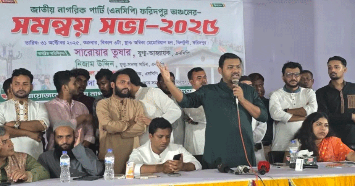 এনসিপির ফরিদপুরের প্রধান সমন্বয়ক সৈয়দা নীলিমা দোলার সভাপতিত্বে এনসিপির যুগ্ম সদস্য সচিব নিজাম উদ্দিন, ফরিদপুর বিভাগীয় সংগঠক রাসেল আহম্মেদ বক্তব্য রাখেন। সভায় ফরিদপুর, রাজবাড়ী, মাদারীপুর ও শরিয়তপুরের এনসিপির কয়েক'শ নেতাকর্মী অংশগ্রহণ করেন।
