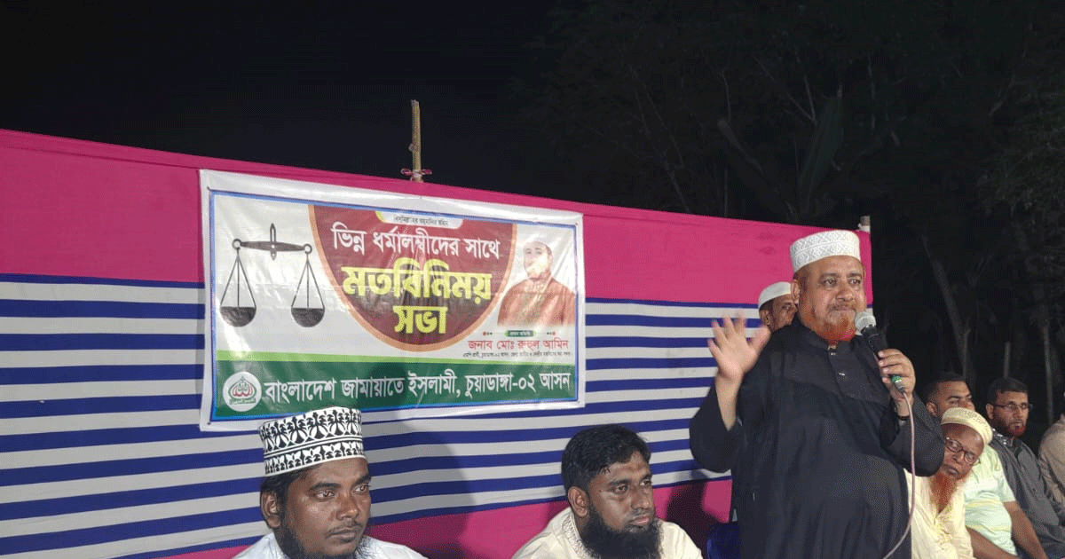 চুয়াডাঙ্গা-দুই আসনে জামায়াত ইসলামী মনোনীত প্রার্থী রুহুল আমিন নির্বাচনি পথসভা ও আলোচনা সভায় অংশ নিয়েছেন।