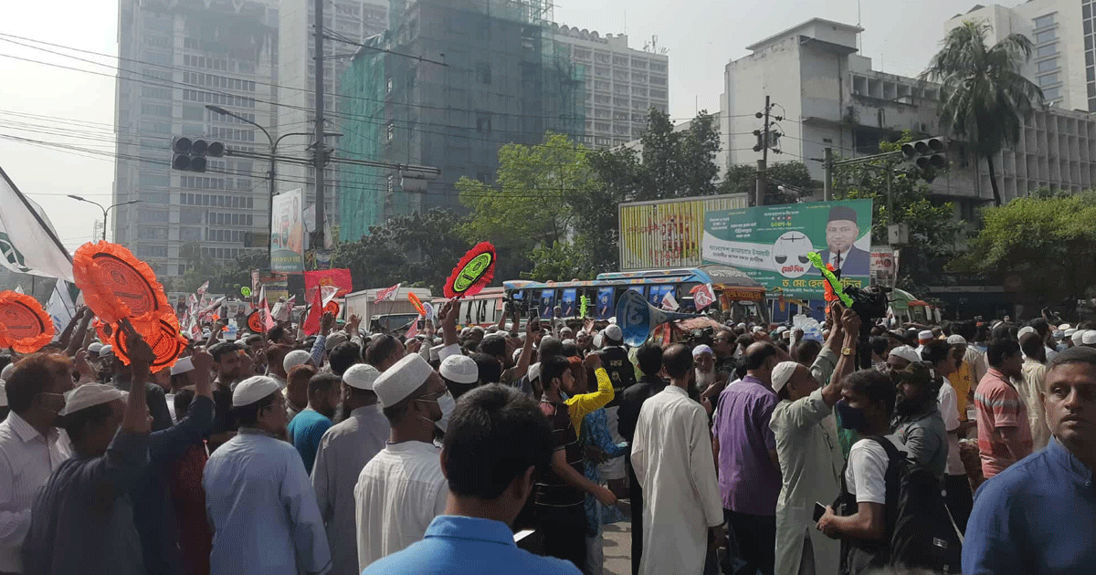 এর আগে সকাল সাড়ে দশটার দিকে মিছিলের নেতৃত্ব দেন জামায়াতের সেক্রেটারি জেনারেল মিয়া গোলাম পরওয়ার। তার নেতৃত্বে ঢাকা দক্ষিণের বিভিন্ন থানা ও ওয়ার্ড পর্যায়ের নেতা-কর্মীরা ব্যানার-ফেস্টুন নিয়ে মিছিলে অংশ নেন।