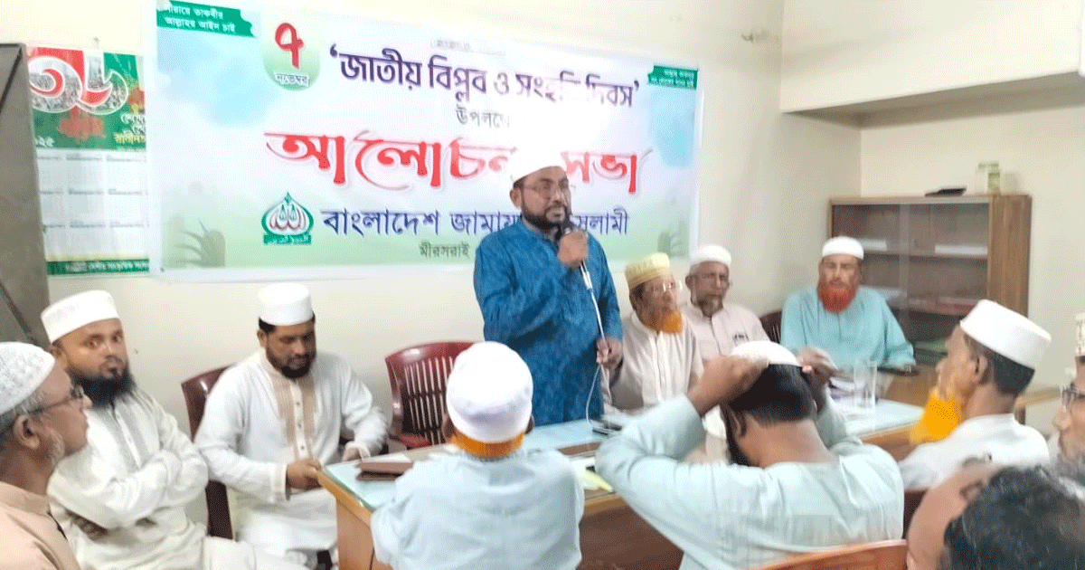 বাংলাদেশ জামায়াতে ইসলামী চট্টগ্রামের মিরসরাই পৌর সভার উদ্যোগে জাতীয় বিপ্লব ও সংহতি দিবস উপলক্ষে আলোচনা সভা অনুষ্ঠিত হয়েছে।