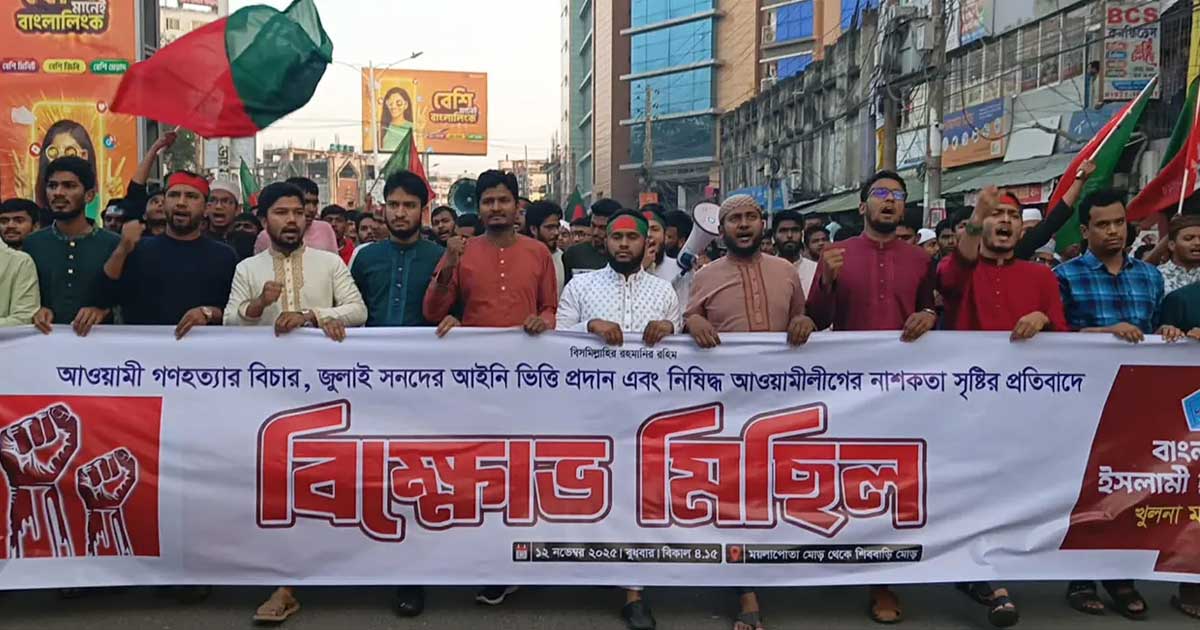সারা দেশে নাশকতা সৃষ্টির প্রতিবাদে খুলনায় বিক্ষোভ মিছিল ও সমাবেশ করেছে ইসলামী ছাত্রশিবির। আওয়ামী গণহত্যার বিচার, জুলাই সনদের আইনি ভিত্তি প্রদান এবং নিষিদ্ধ আওয়ামী লীগের নাশকতা সৃষ্টির প্রতিবাদে বুধবার খুলনার শিববাড়িতে এ বিক্ষোভ মিছিলের আয়োজন করা হয়।