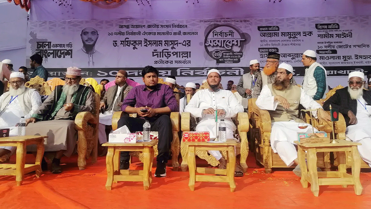 আসন্ন ত্রয়োদশ জাতীয় সংসদ নির্বাচন উপলক্ষে ১০ দলীয় নির্বাচনী ঐক্যের মনোনীত প্রার্থী ড. শফিকুল ইসলাম মাসুদের দাঁড়িপাল্লা প্রতীকের সমর্থনে এ নির্বাচনী সমাবেশের আয়োজন করা হয়।