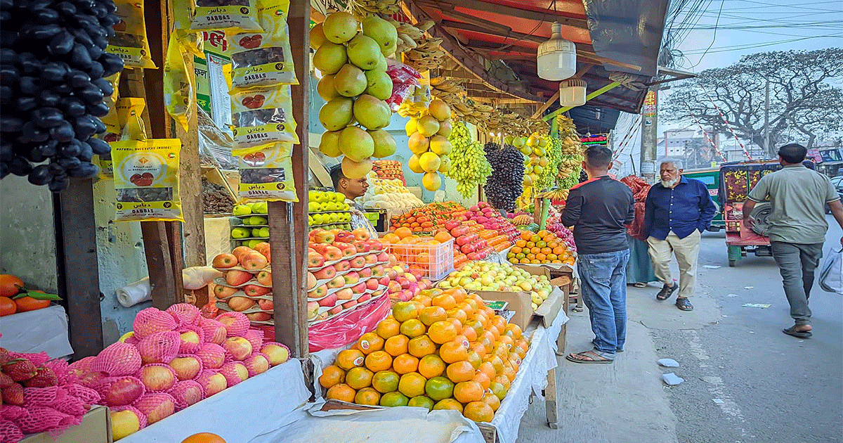 অন্যদিকে ব্যবসায়ীরা বলছেন, পরিবহন ব্যয় বৃদ্ধি, পাইকারি বাজারে অস্থিরতা ও আমদানিনির্ভরতার কারণে দাম বেড়েছে। ডিবি রোডের ফল বিক্রেতা আনিসুজ্জামান বলেন, 'আমরা যে দামে কিনি, তার ওপর সামান্য লাভ রেখে বিক্রি করি। রমজানে চাহিদা বাড়ায় দামও বাড়ে।'