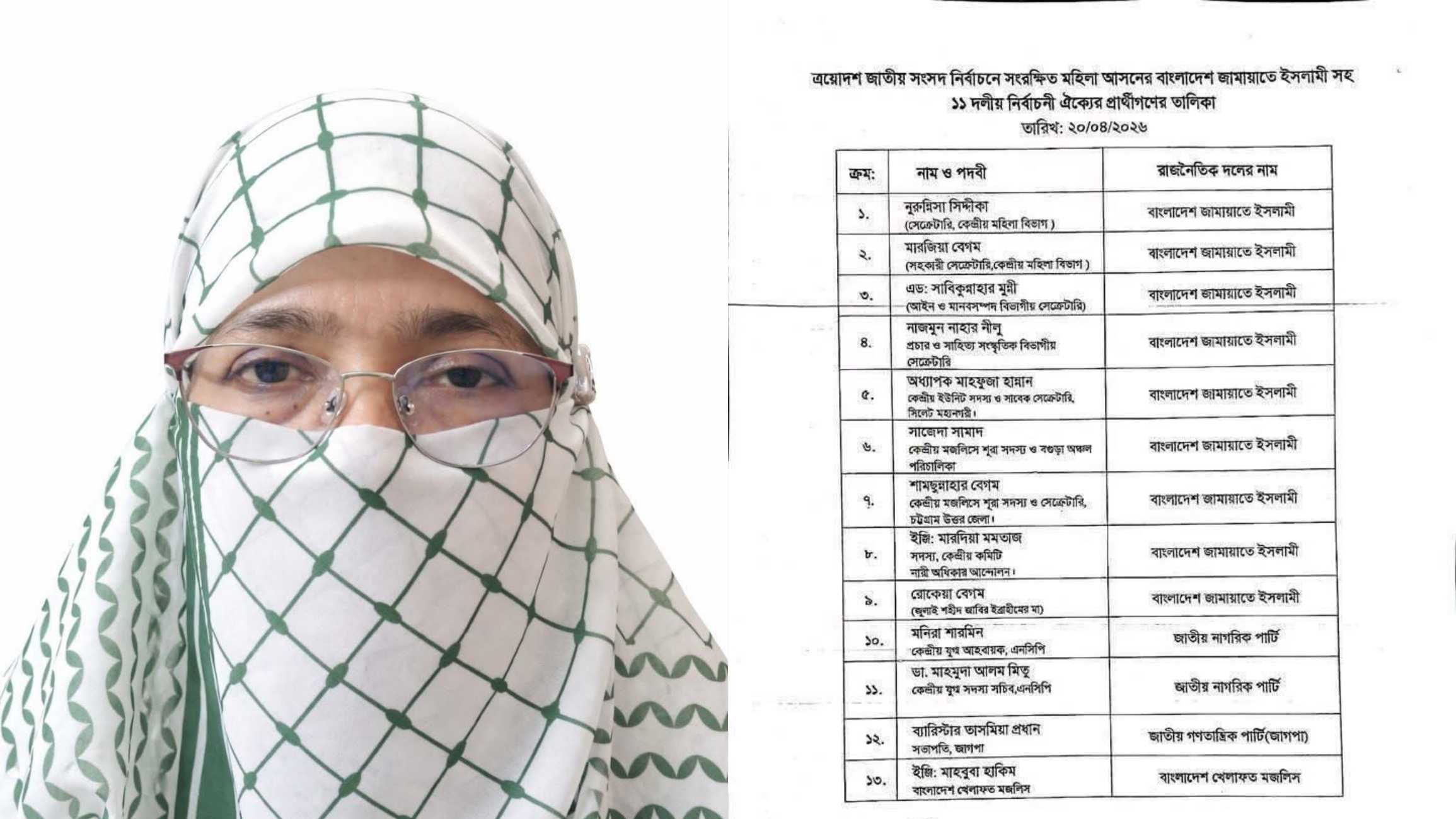 জাতীয় সংসদের সংরক্ষিত মহিলা আসনে বাংলাদেশ জামায়াতে ইসলামী কর্তৃক মনোনীত হয়েছেন মিরসরাইয়ের শামসুন্নাহার বেগম।